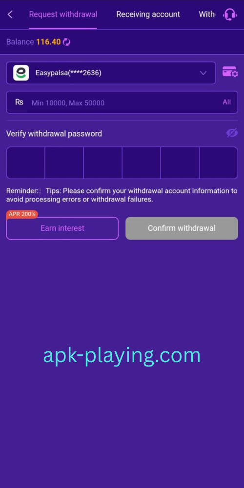 Following are the steps that you use to withdraw your money from the app: