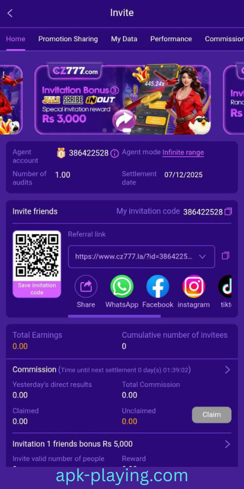 Earn from referrals in CZ777 APK