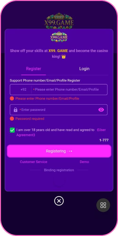 How users can create an account on X99 Game
