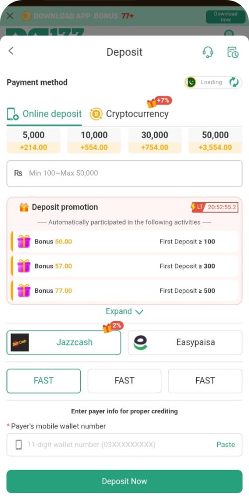 The app is giving a safe and secure environment with some of the features like secure payment methods, and instant deposits. The RS177 App is providing the chance to everyone to win the games. jazz cash, easy paisa it is optimized with these payment methods. You can try the Game X99 & J188 Game