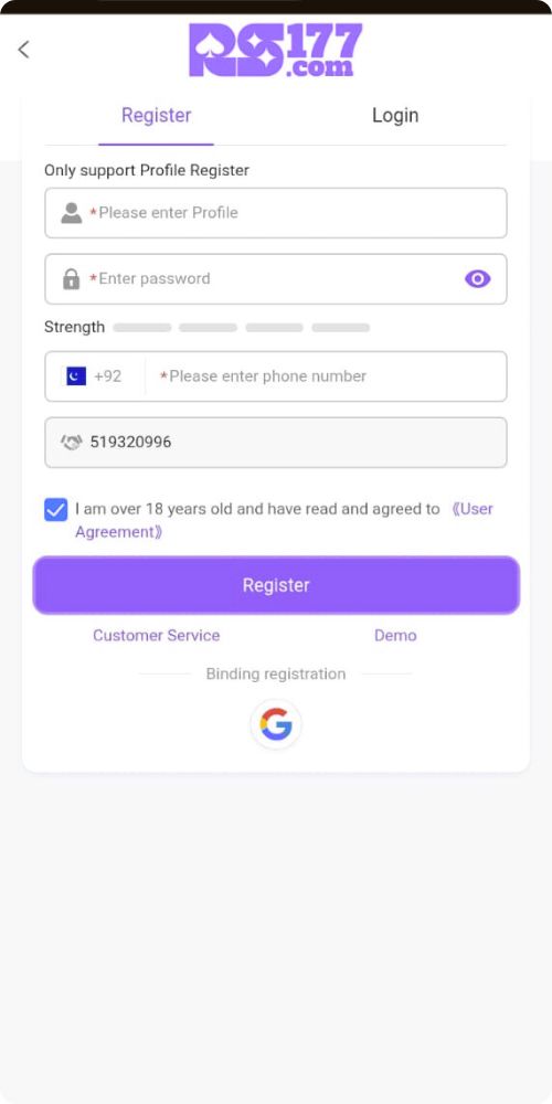 - Go to the official website: Open browser and search for the Game Rs177 and press on the first website which will be appear there.